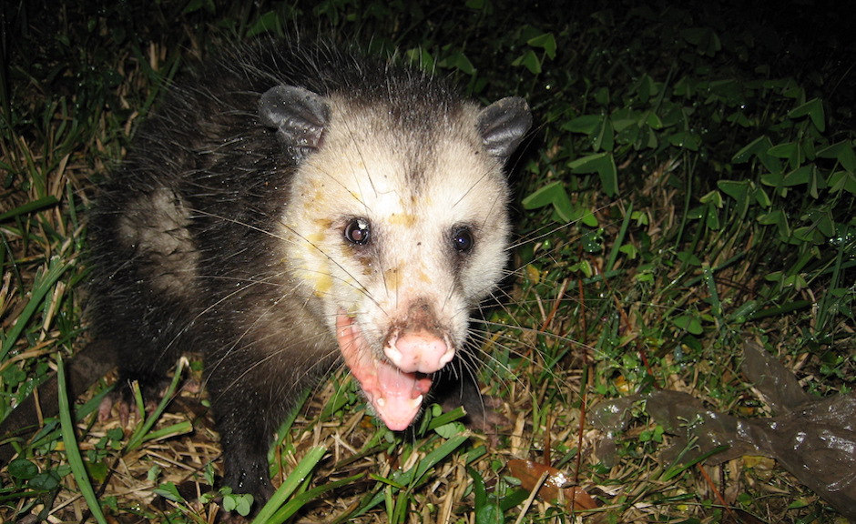 Opossums should never be handled as they have a nasty bite and many of them carry the rabies disease.